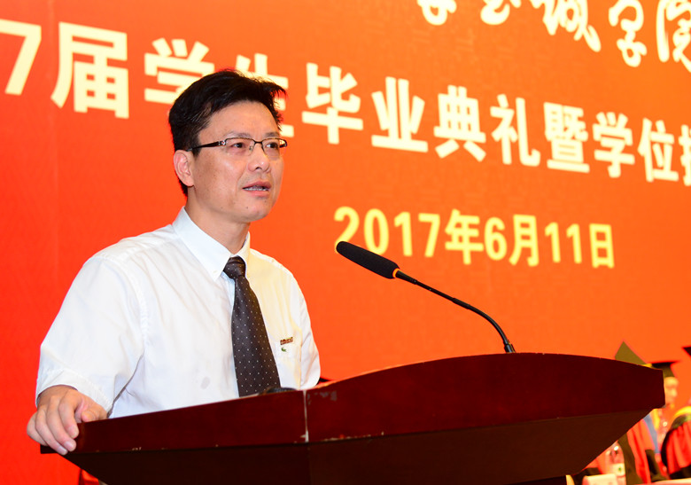 朱祖平院长在毕业典礼上讲话,他代表全院师生向毕业生表达了真诚的祝贺和美好的祝愿。他以“己之所欲,勿施于人”、“不要打扰他人”和“贡献团队,服务社会”三句话作为对毕业生的临别赠言,希望毕业生们在社会转型和传统价值观念逐渐消解的今天,要学会主动接纳和包容各种文化,学会换位思考,不要过于“自我”,要主动融入团队、关注社会与他人。在踏上工作岗位之后要继续努力学习、锻炼身体,承担责任、服务社会,做一个科学精神与文化素养兼备的“全人”,主动拥抱伟大盛世,为中国的新一轮崛起贡献智慧与力量。朱院长深切的话语和智慧的启迪赢得现场热烈的掌声。