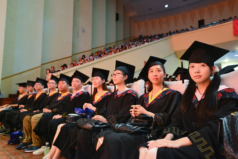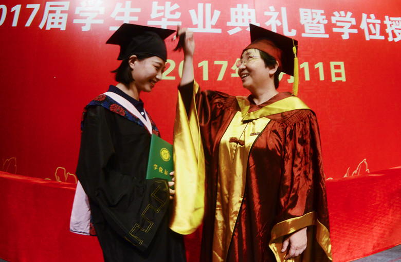 毕业典礼结束后,举行了学位授予仪式。院长朱祖平教授、副院长朱敏琛教授与各系系主任为获得学士学位的毕业生一一正冠拨穗,并颁发学位证书。