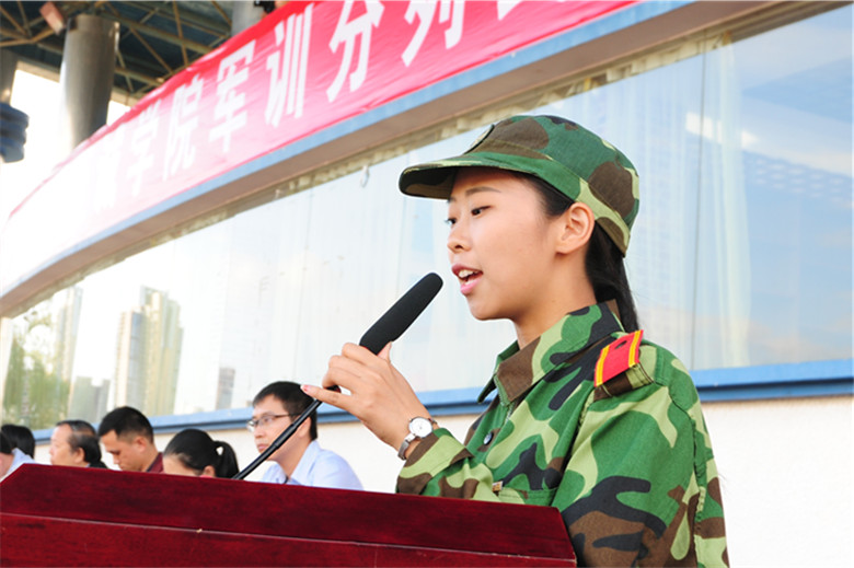 颁奖结束后,2017级学生军训优秀学员代表陈洁同学发言。她代表全体2017级新生向承训部队教官和德州扑克app推荐 领导老师致于衷心的谢意,并表达了军训中的感悟。