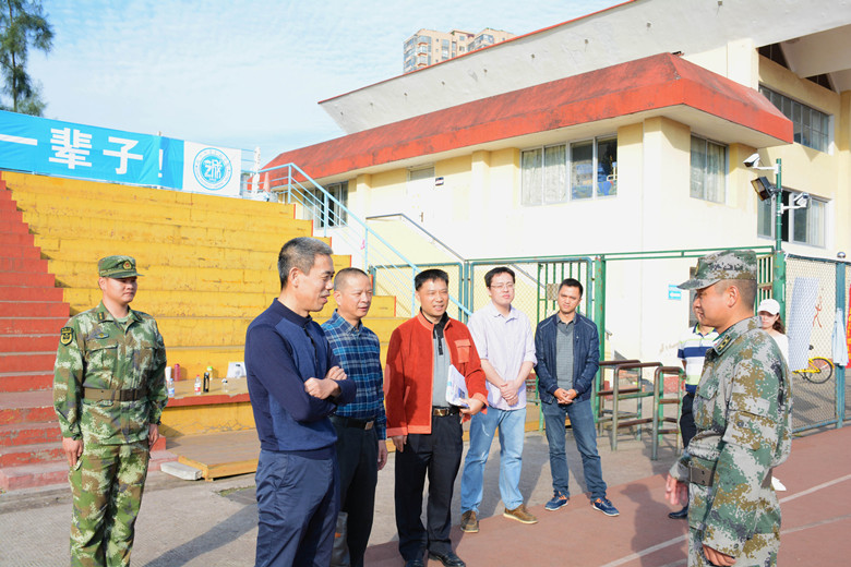 ,调研指导大学生军训工作。福州市鼓楼区人武部副部长兼军训团参谋长刘超中校,我院朱祖平院长、程文忠常务副书记、林行副院长及相关部处负责人接待了彭杰调研员,陪同其视察了大学生军训现场,为其介绍我院军训工作情况及特色做法。