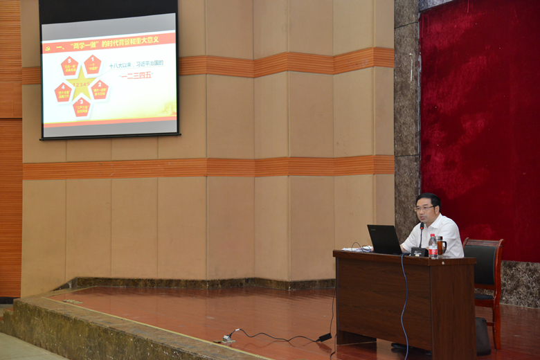 随后,林生书记从“八个明确”和“十四个坚持”为大家深入阐释了习近平新时代中国特色社会主义思想,重点围绕“坚持和发展中国特色社会主义的总任务”、“新时代我国社会主要矛盾的变化”、“推动构建人类命运共同体”、“党的政治建设”等四个方面展开论述,重点突出、形象生动地剖析“两学一做”的深刻内涵。