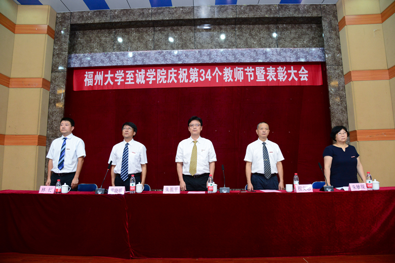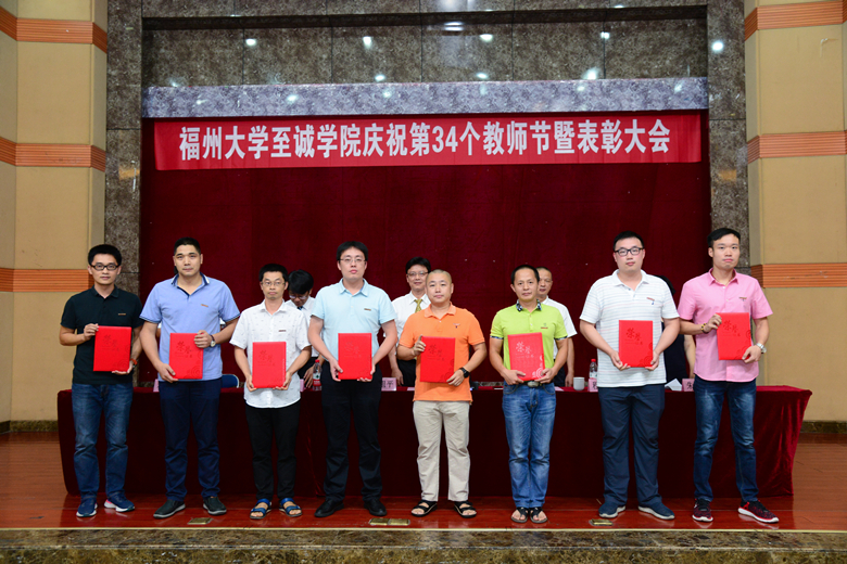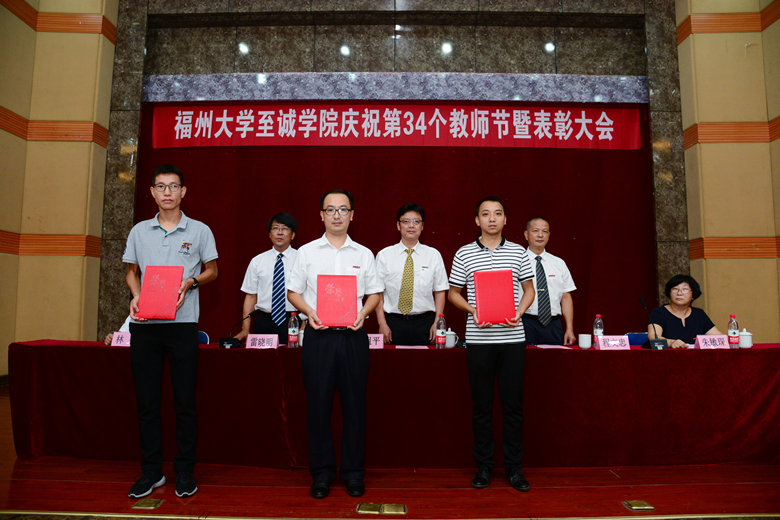 伴随着雄浑的国歌声,大会正式开始。在朱敏琛副院长宣读完表彰决定后,举行了颁奖仪式。2018年院优秀教师张帆等4人,2018年院优秀教育工作者林闽卿等8人,2018年院优秀科研工作者陈雅姗等2人,2018年福建省高校新世纪优秀人才计划入选者洪防璇等3人,福建省第八届和第九届高等教育教学成果奖获得者、福建省第四届高校青年教师教学竞赛获得者、福建省优秀教育工作者、福州大学青年教师“最佳一节课”竞赛奖及院2018年“最佳一节课”竞赛奖获得者等教师分别上台领奖。随后举行2018年副高级专业技术职务聘任仪式,朱祖平院长为新晋副高级职称的5位老师颁发了聘书。
