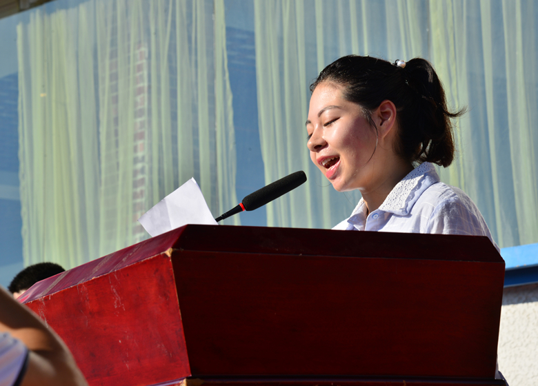 典礼在雄浑的国歌声中开始。经济管理系2018级国际经济与贸易专业马晨歌同学、人文艺术系系主任郭蓉教授分别代表新生和教师在典礼上发言。马晨歌同学在讲话中表达了对大学生活的向往和喜悦,并结合习近平总书记5月2日在北京大学考察时对广大青年寄予的四点期望,倡议全体新生在未来的日子里脚踏实地,打好基础,提升素养,为社会主义建设者和接班人的使命努力奋斗;郭蓉老师对新同学表示祝贺与欢迎,希望同学们在大学里收获学识、历练品行、成熟心智、开拓视野,做一个拥有善良美德和进取之心的人。
