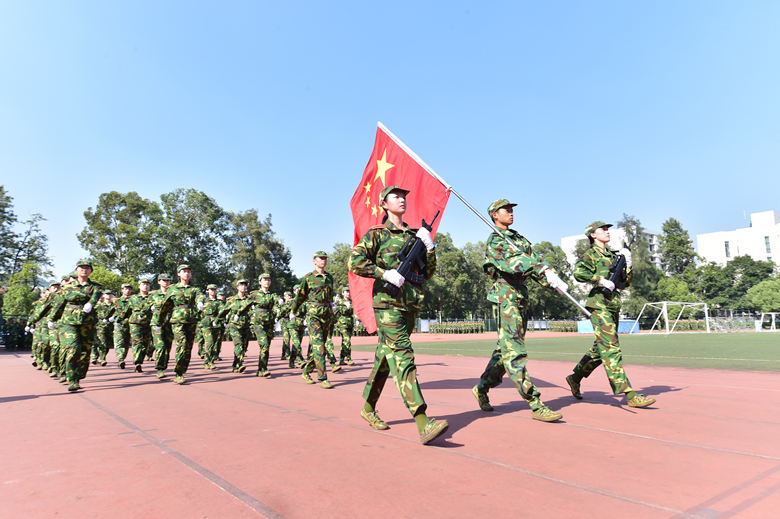 伴随着《中华人民共和国国歌》的歌声,大会正式拉开了序幕。国旗护卫队方阵及各系军训方阵按秩序入场,同学们步伐整齐划一、口号高亢嘹亮,满怀豪情、斗志昂扬地走向主席台接受领导来宾的检阅。紧接着,应急棍术方阵、擒敌术表演方阵、战术表演方阵给大家呈现了气势如虹的精彩表演,震撼全场。