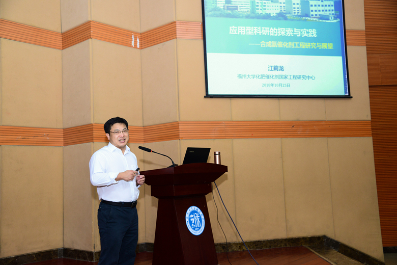 首场报告会,江莉龙研究员为全院教职员工带来题为《应用型科研的探索与实践》的专题报告。江莉龙研究员是科技部化工重点领域创新团队带头人、国家“万人计划”科技创新领军人才,2018年获国家杰出青年基金项目资助。江莉龙研究员长期坚持在化工催化领域开展创新研究,取得了丰硕成果。报告中,他结合自身开展合成氨催化剂工程研究的科研经历,详细讲解了应用型科研的研究思路和方法。他指出应用型科研应面向国家、行业、企业的需求,融入团队,建设平台,注重“产学研用”深度融合。他强调科学研究具有共性导向、交叉融通的特性,在研究过程中,应抓住关键性科学问题,通过实践不断探索,从而取得突破。