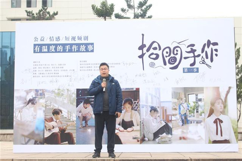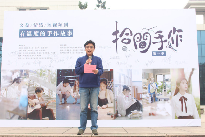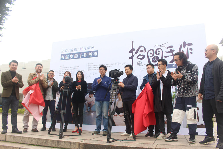 1月12日上午,由德州扑克app推荐 和福州内容矩阵文化传媒有限公司等单位联合摄制的公益/情感短视频剧《拾间手作》在院图书馆前举行了开机仪式。福州内容矩阵文化传媒有限公司负责人、匠心文化负责人、福建迪塞尔传媒负责人以及行业多家相关机构负责人,德州扑克app推荐 朱祖平院长、创意与设计系陈莞副教授、陈亮副教授、杨健老师、龙沛老师等师生代表参加了开机仪式。