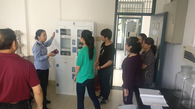 许靖警官首先传达了省公安厅相关文件精神,通报了近期我省因实验室危化品管理不善导致的相关安全事故案例;听取了德州扑克app推荐 危化品安全管理工作汇报,并在查阅相关台账及制度材料后,赴德州扑克app推荐 危化品存放现场检查存放场所安全性及“五双”制度落实情况和记录等。许靖警官对德州扑克app推荐 危化品安全管理及设施建设给予了充分肯定,并对进一步加强危化品安全管理进行了具体指导:希望德州扑克app推荐 尽快在危化品贮存场所安装监控设施,并落实危化品安全管理制度上墙等措施。许靖警官还与德州扑克app推荐 领导就今后合作开展“禁毒宣传进校园活动”等事项达成了共识。