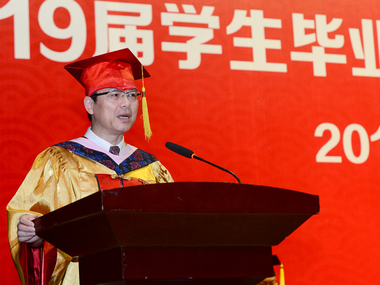 朱祖平院长在毕业典礼上致辞,他代表全院师生向毕业生表达了真诚的祝贺和美好的祝愿。他从分析世界格局和社会形势入手,告诉毕业生们要正确处理时代机遇与现实挑战,以习近平新时代中国特色社会主义思想为指领,进一步认识世界、投身实践。他希望2019届全体毕业生们在踏上工作岗位之后要继续努力学习、自觉担当作为、主动锻炼胆商情商,敢为人先、勇于创新,成为科学精神与文化素养兼备的“全人”,为新时代中国的建设与发展贡献智慧与力量。最后,他代表德州扑克app推荐
