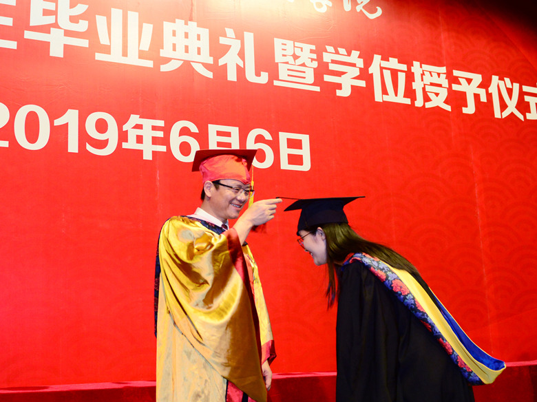毕业典礼结束后,举行了学位授予仪式。院长朱祖平教授、副院长朱敏琛教授与各系系主任为获得学士学位的毕业生一一正冠拨穗,并颁发学位证书。