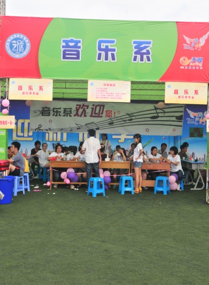 其他各系也在自己的迎新的场地上闪出了自己的亮点:音乐系在场地前方的草地上拼出了“音乐系欢迎你”,化工系设计的彩虹签字板上铺满了化学符号,物流系更是别具匠心的推出了淘宝体迎新语,让人大呼创意!