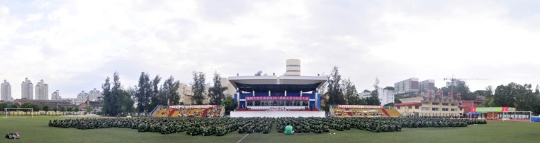 于东区操场隆重召开2011级新生军训动员大会。德州扑克app推荐