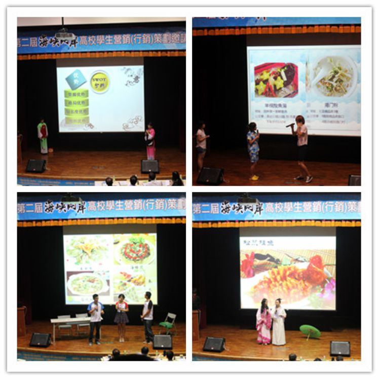 “客家三韵”、“椰风队”、“夏之味”、“才子佳人队”四支代表队分别以山歌话美食,诠释客家文化;以椰糖释风情,领略海南特色;以故事串联两岸,共叙厦台闽南情;以唐伯虎点秋香为主线,演绎苏州浓郁江南水乡情。其中“夏之味”队获二等奖,“客家三韵”、“椰风队”、“才子佳人队”三支队伍获三等奖。