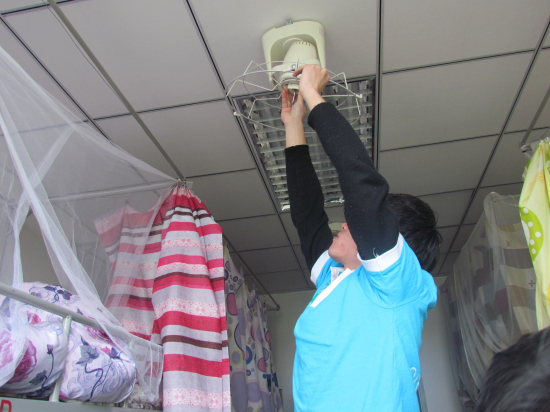 青年志愿者们利用周末两个下午的时间,走进女生小区清洗了数百台风扇。拆卸、清洗、安装,志愿者们的热情、悉心得到了女生们的一致称赞,他们以自己力所能及的实际行动,服务、奉献,给予每一位同学温暖,让学雷锋不再是表面功夫。