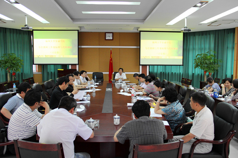 专任教师工作量标准与考核规定》(以下称“规定”)展开专题研讨,听取系主任意见,并就下一阶段的工作进行部署。院长吴秋明、院党委专职副书记陈为旭、院党委副书记兼副院长雷石宝、副院长唐艳枫、副院长朱敏琛、院长助理兼两办主任林行、各系系主任及院党委办公室、人力资源部、教务部、评建办、学生事务部、院团委等相关部门负责人出席了会议。