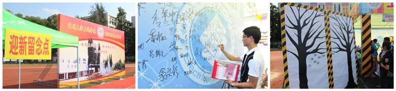 学子,明日国家栋梁”口号寄语新生,不少新生和家长纷纷在留影处合影。工作人员随后记下新生的电子联系方式,会在第一时间将此具有纪念意义的照片发给新生。此外,此次迎新各系亮点频现。土木建筑系搭起了两幅指纹树展板,新生和家长可以在上面留下属于自己的“指纹”树叶,并用拍立得给新生和家长拍出纪念照片,即时粘贴在展板上,留下这极具纪念价值的瞬间;粘贴在电气工程系报到点的大型机器人图片,既吸引了新生的眼球,也显示出电器工程系在机器人大赛中的强劲实力;汉语言文学系工作人员统一穿着写有“汉风旖旎”的系服,工作点中两个精心制作的“汉”字,彰显汉语言博大精深;企管系悬挂的“新的生活,新的自己”、“学生自立,家长鼓励”等口号,激励新生自立自信自强......对于新生的到来,各系都做好了充分的准备,他们创新的布置,热情的服务、端正的态度、认真的工作给新生的大学生活奠定了美好的基础,同时也为新生的学习指引了方向。