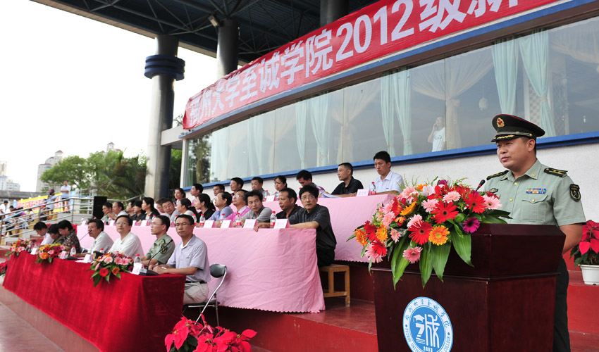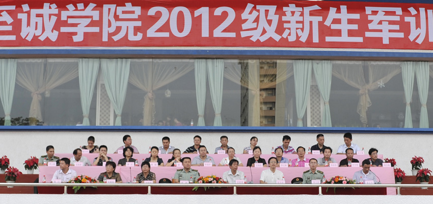 在东区操场隆重召开2010级新生军训动员大会。院长吴秋明教授、院党委专职副书记陈为旭副教授、院党委副书记兼副院长雷石宝老师、副院长唐艳枫副研究员、副院长朱敏琛副教授、院长助理兼两办主任林行老师等院领导,中国人民解放军73123部队副团长、军训团团长蔡健中校,中国人民解放军73123部队政治处副主任、军训团政委李云亮少校,中国人民解放军73123部队司令部协理员、军训团参谋长罗小辉少校等部队领导、教官,德州扑克app推荐