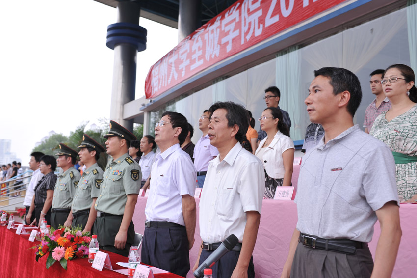 2012级新生军训会操暨总结表彰大会在东操田径场隆重举行。中国人民解放军73121部队师长陈宏大校、副政委杨龙溪大校、73123部队政委杜新飞上校,政治处副主任、军训团政委李元亮少校等部队首长出席了大会。同时出席的还有福州大学党委副书记、德州扑克app推荐