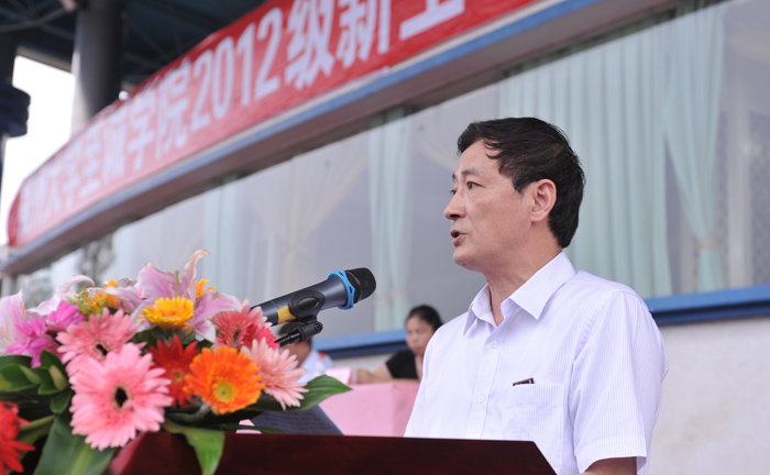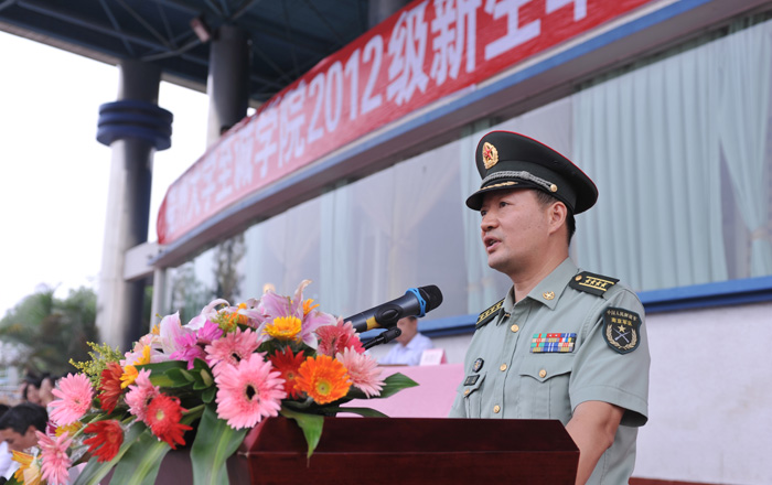 向承训部队的全体教官的辛苦付出表示感谢,对参与军训工作的全体老师和2012级全体新生表示慰问,向获得取得优异成绩的军训先进集体和个人表示祝贺。对2012级新生军训过程中表现出的良好风貌给予了高度肯定,并对2012及新生提出殷切希望:希望同学们巩固成果,保持军训中养成的良好习惯,学习部队优良作风,把军训中的收获和体会内化为成长成才的精神动力,树立正确的人生观、价值观,秉承“明德博学、臻于至善”院训,勤奋学习、脚踏实地,用优异成绩回报社会。