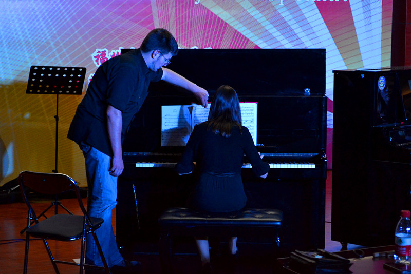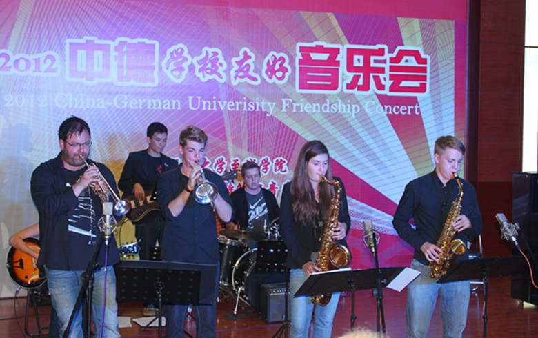而整个晚上的最高潮,出现在了全场的最后一轮表演——爵士乐表演,德国年轻老师自创的等两首爵士在架子鼓与吉他的演唱中调动了气氛,而其后演出的乡村风《如果我是一只鸟》将全场的气氛推向了最高潮,同学们主动跟拍鼓掌,整个音乐厅洋溢着欢快的气息。在乡村乐与蓝调过后,德国代表团以一曲乐器改编的《茉莉花》惊艳全场,为整个音乐会划上圆满句号,持续了近三个小时的音乐盛典宣告结束。