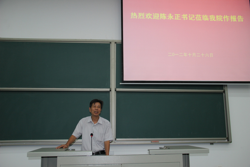 全体院领导,各系、各部门负责人及师生员工200多人到场聆听报告,院长吴秋明教授主持报告会。