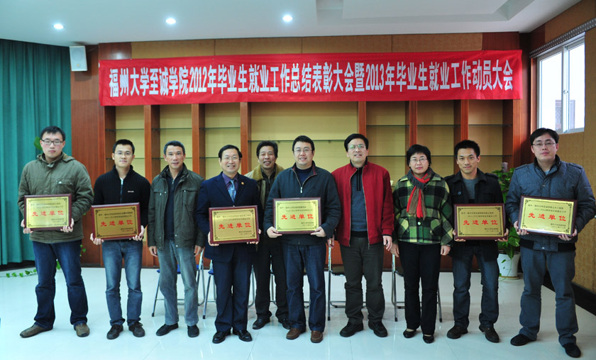 领导分别为获得表彰的先进单位和个人颁奖。建筑系、材料工程系、社会事务管理系、土木工程系、环境资源工程系、信息工程系被评为就业工作先进单位,生物工程系、建筑系、机械工程系被评为考研工作先进单位,物流管理系被评为创业工作先进单位,吴东、陈路舟、林希、林景兰、游晓丽、卢丽敏、熊燕七位老师被评为就业工作先进个人。