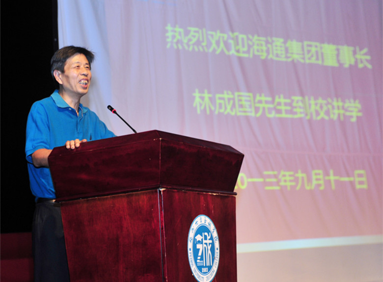 报告会上,林成国董事长首先与同学们分享了其个人成长经历及海通集团的企业成长经历,总结了其创业成功的关键因素,并告诉同学们奋斗的重要性和当代大学生应当践行的社会责任。林成国董事长认为履行社会责任要以能力的提升为基础,他以切身的经历和儿子的案例劝告同学们在学期间要注意专业知识的学习、注重思想道德品质的提升,要把握自身兴趣需求提前规划大学生涯。林成国董事长语言平实、生动,感染了现场观众,报告会现场掌声不断。