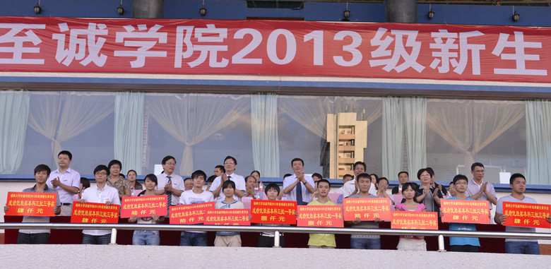 随后,副院长朱敏琛副教授宣读了“2013级优秀新生奖学金”名单,并进行了颁奖仪式。表彰了获得新生成绩优胜奖同学34名,科技创新奖同学1名,艺术体育奖4名。