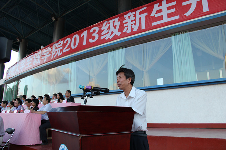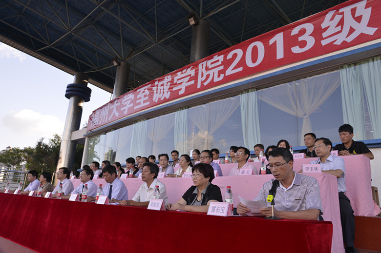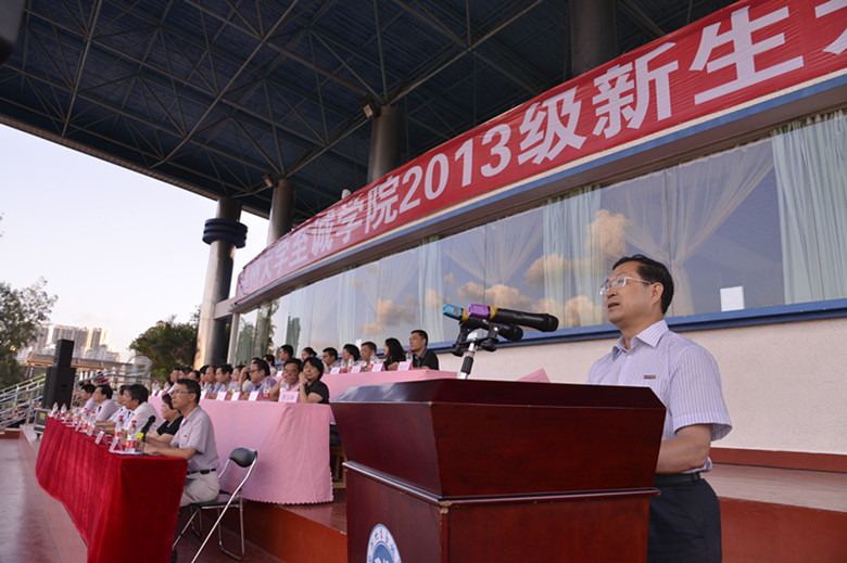 9月17日下午,院2013级新生开学典礼在德州扑克app推荐 东操田径场隆重举行。中国工程院院士、福州大学校长、德州扑克app推荐 董事长、博士生导师付贤智教授,福州大学党委副书记、德州扑克app推荐 副董事长、党委书记陈尚义研究员,德州扑克app推荐 院长、博士生导师吴秋明教授,院党委专职副书记陈为旭研究员,院党委副书记兼副院长雷石宝老师,副院长唐艳枫副研究员,副院长朱敏琛副教授,院长助理兼两办主任林行老师等德州扑克app推荐 领导及各系主任、各部门负责人、各系团委书记、全体新生辅导员与2013级全体同学一同参加了典礼。典礼由院党委副书记兼副院长雷石宝老师主持。