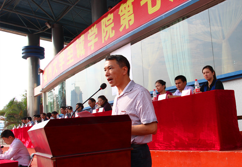 随后举行了升国旗仪式。礼毕,院党委副书记、副院长兼体育运动委员会主任雷石宝老师致开幕词,他希望全体运动员能够发扬更高、更快、更强的奥运精神,赛出风格、赛出水平,希望全体大会工作人员恪尽职守、精心组织、热情服务为本届运动会的成功贡献自己的一份力量。裁判员代表何语林老师、运动员代表也先后上台宣誓。