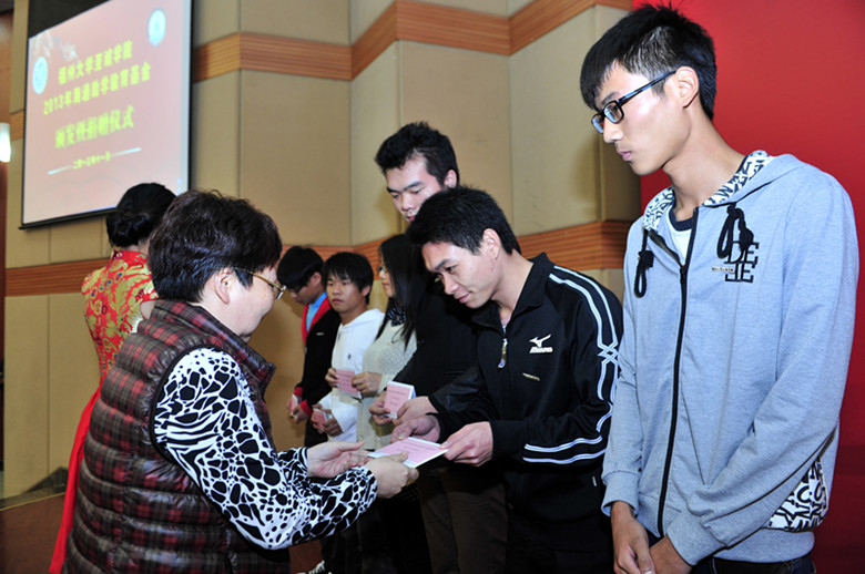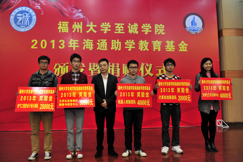 仪式上,德州扑克app推荐-德州扑克平台推荐 海通助学教育基金会秘书长、香港同胞黄美玉女士首先宣读2013年海通助学教育基金资助名单,德州扑克app推荐 72名贫困大学生受到了5000-10000元不等的资助。福建海通集团林成国董事长、林祝凤总裁、黄美玉女士分别将40.1万元的现金资助款亲手交到了德州扑克app推荐 72名贫困大学生的手上。其中,首批选拔参加贫困生创业型人才实训班的学员也收到了补助。随后,全体与会人员观看了2013年海通助学教育基金奖励团队视频,并由黄美玉女士宣读2013年海通助学教育基金奖励名单。机器人创新团队、学生艺术活动中心、大学生设备维护维修与研发中心、计算机创新团队、电气工程系电子设计团队等5支队伍共获得15万元奖励。