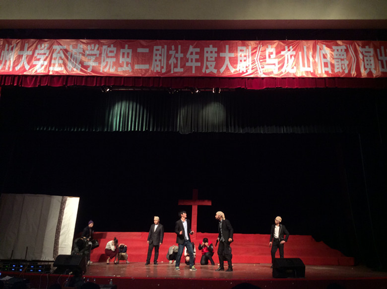 舞台剧《乌龙山伯爵》由学生艺术中心虫二话剧社改编排演,讲述的是一个屌丝青年从一夕之间暴富又于顷刻之间沦为“劫匪”,蛰伏三年后,与当年的劫匪之一一起找回了属于自己的清白,也拿回了属于自己的钱财的故事。整部剧基调轻快,语言逗趣,演员们表演精彩,现场掌声热烈。