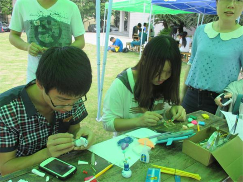 此次大赛以“陶天下之瓷,展你我风采”为主题,要求1至3名学生自由组队,在150分钟内,根据自选图纸,使用各色软陶土、水、牙签等固定材料完成模型。评委由三校专业师生组成,分专业和美观两项,根据作品结构稳定性、手工的精致及难易程度、作品整体感等评分。比赛采用爱心义卖的方式,参赛陶艺作品完成后,拿到操场展示,并标价义卖,所得的善款将由三校代表联合捐出,用于帮助福州市聋哑学校购置学习用品和生活用品。